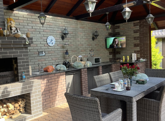 - Особенности: Камин/печь , Баня/СПА/Хамам , Бассейн , Барная стойка , Беседка , Гараж , Гардеробная , Детская , Кабинет , Кухня-гостиная , Парадная лестница , Пруд , Спальня , Вид из окна , Фонтан , Столовая , Колонны
