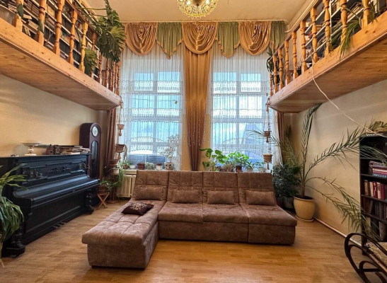 Жилой дом, с двухэтажным залом: высокими окнами, камином, пианино, балконом и библиотекой. Современная кухня, гостиная, есть возможность выйти на крышу, очень красивый вид, данное помещение свободно для перепланировки