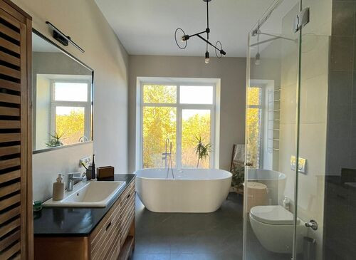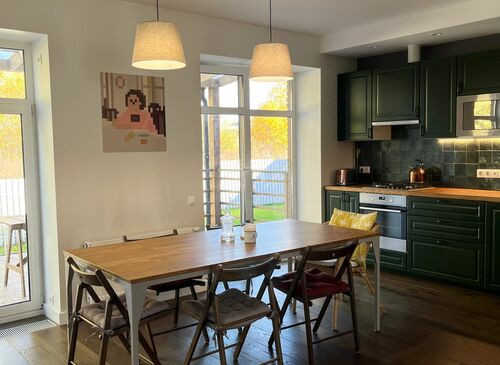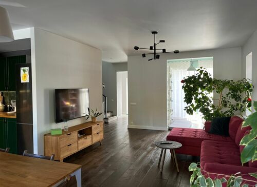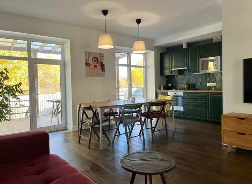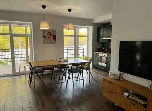 • Особенности: Большая кухня , Окна в пол , Детская , Кабинет , Кухня-гостиная