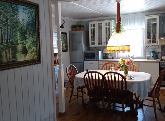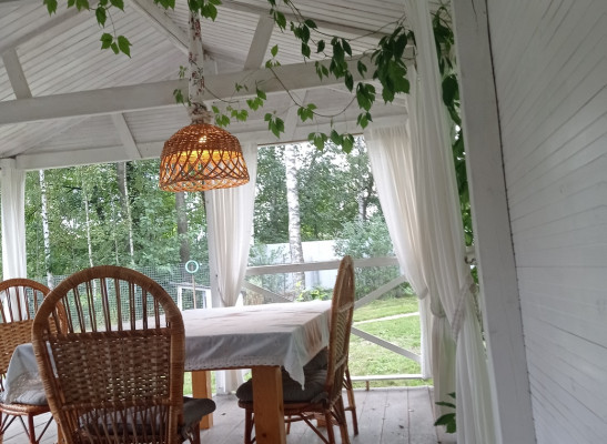 Дача на берегу пруда,берёзовый лес круглогодичный подъезд, парковка. Одноэтажный деревянный дом в русском, классическом стиле 110 кв.м. Участок 12 соток, ухожен, большая беседка с плетёной мебелью. В доме три спальни и гостинная-столовая 55 кв.