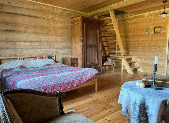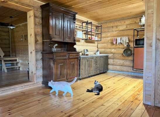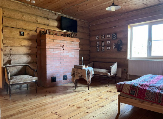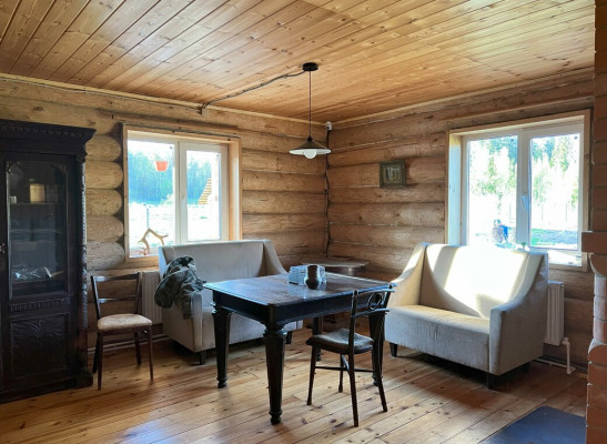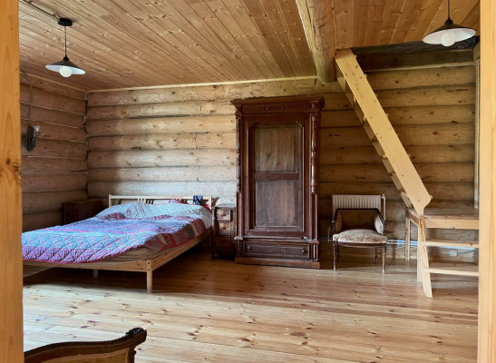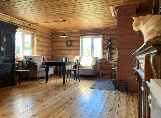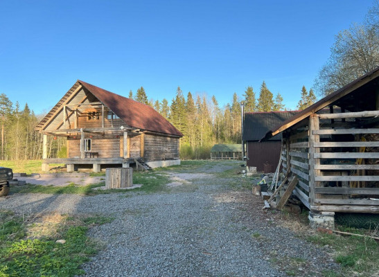 Дом на старом финском хуторе, это лесная поляна с жилым домом и обилием хозпостроек в окружении живописного леса с вековыми елями на опушке Дом из толстых бревен с открытой верандой. На первом этаже два больших помещения по 35 метров кв2. с русской печью и кухней. Большинство мебели начало 20 века в хорошем состоянии, Лестница на второй мансардный этаж - 70 метров кв2.