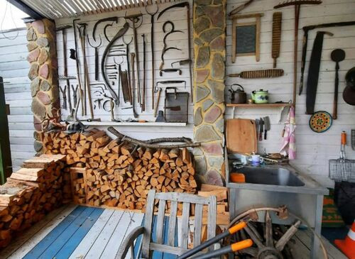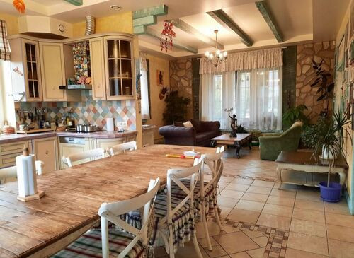 На территории расположен Гостевой домик, небольшой огород с теплицей, детская площадка, большой батут, а также Отдельный мангальный комплекс, в который входит Русская печь, тандыр, казан и мангал. Большая коллекция старорусской утвари. Детская игровая комната.