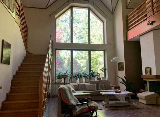 Уютный деревянный дом с камином и садом