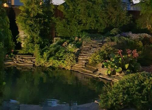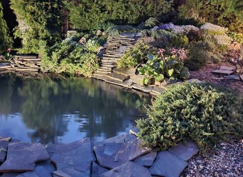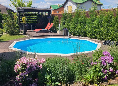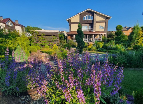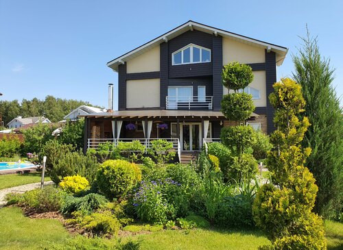 Коттедж для киносъёмок готов!Ландшафтный дизайн на участке, бассейн на улице, беседка.