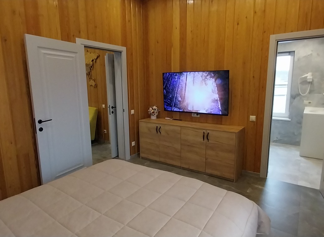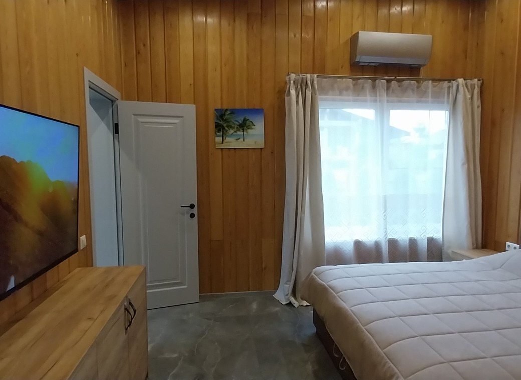 В доме две спальни, одна из них мастер-спальня, оборудованы двуспальными кроватями с ортопедическими матрасами производителя Орматек. Кондиционеры и Телевизоры Samsung в каждой спальне с диагональю 55 и 50.