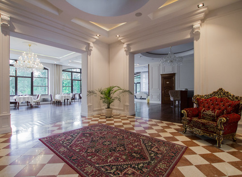 Шикарная резиденция. Частная территория и роскошный зал для съемок интересных проектов. Для съемки свадеб в сериалах и фильмах.Резиденция работает с 2015 года.