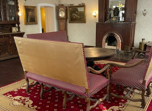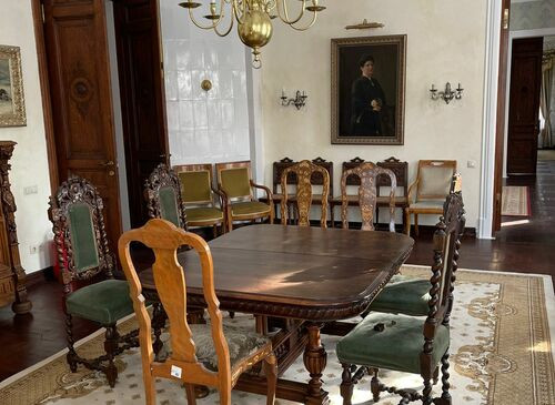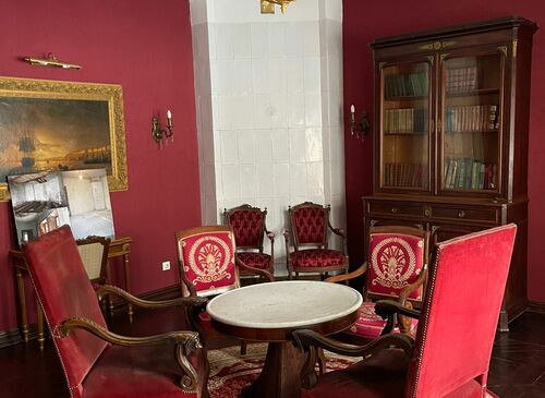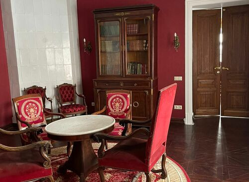 • Особенности: Камин/печь , Выход на крышу , Рояль/пианино , Большой балкон , Детская , Кабинет , Крыша , Мансарда , Парадная лестница , Пруд , Спальня , Терраса , Эркер , Вид из окна , Кованные ворота , Музей , Столовая , Зал Торжеств , Колонны