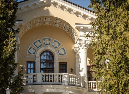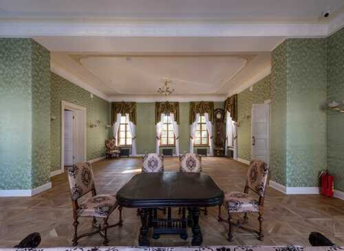 Окна в пол , Большой балкон , Гардеробная , Кабинет , Парадная лестница , Терраса , Эркер , Вид из окна , Музей , Столовая , Зал Торжеств , Колонны