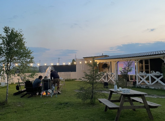 Загородная территория около 4 соток, плюс маленький домик 3х7 с санузлом, душем, маленькой кухонькой, холодильником, панорамными окнами. 2 веранды с крышей. Ухоженная территория. Прямо у леса, и большое поле рядом.