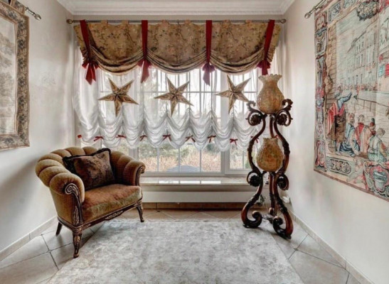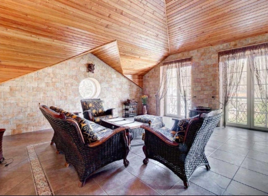 - Особенности: Камин/печь , Спортзал , Баня/СПА/Хамам , Большая ванная комната , Бассейн , Зона Барбекю , Большой балкон , Беседка , Библиотека , Гараж , Гардеробная , Детская , Домашний кинотеатр , Кабинет , Крыша , Пруд , Спальня , Вид из окна