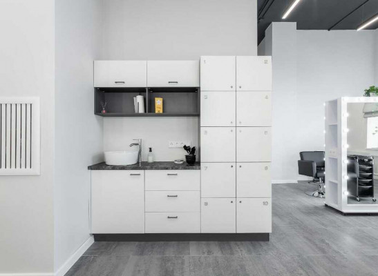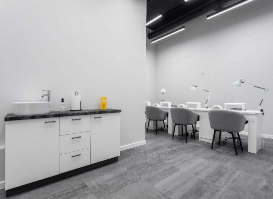 Бьюти-коворкинг, расположен в ЖК, на первом этаже жилого дома, с отдельным входом. 130 м2, современный интерьер, светлое и просторное помещение с высокими потолками.