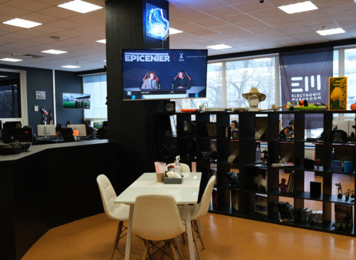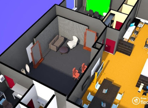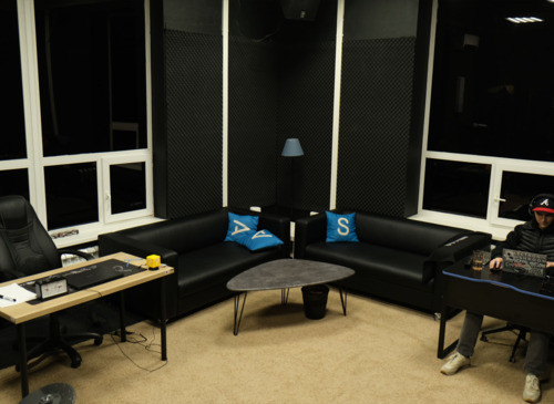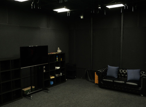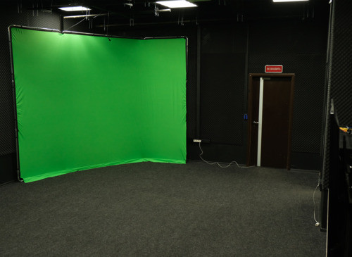 По 3-м стенам натянута зелёная ткань, которую можно заменить на черную. Стены отделаны шумоизоляцией. Помещение подойдет для эфиров малого формата: интервью, презентация, вебинар, комментаторская зона, let’s play и прочие.