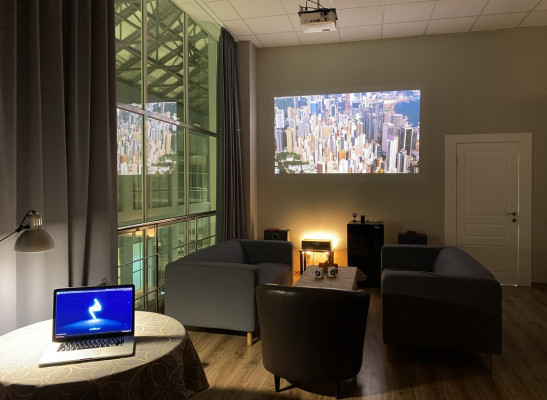 Комфортабельная ТВ-студия с циклорамой хромакей для онлайн-мероприятий и съемки видео.Большая гостевая зона