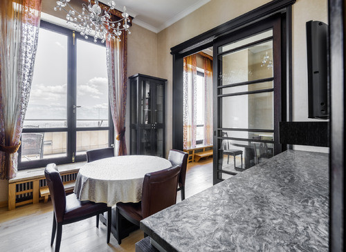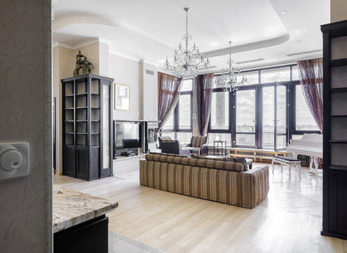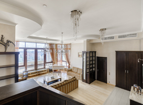 Просторный трёхэтажный пентхаус рядом с метро Ломоносовский проспект, ЖК Воробьёвы горы. Просторная гостиная с камином и роялем Petrof, огромная лоджия с видами на Москву, 4 спальни, финская сауна и хорошая акустическая система по всему помещению. О ПЕНТХАУСЕ