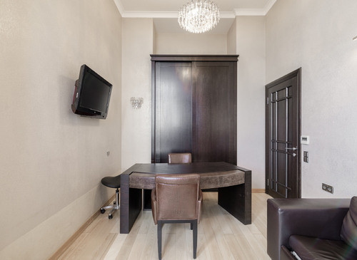 Комнаты: 7. Четыре изолированные спальни, гостиная, игровая комната, рабочий кабинет, кухня-столовая, шесть санузлов с душевыми кабинами, финская сауна на 6 персон.
