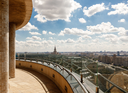 Терраса имеет обзор 270 градусов на всю Москву. Большая площадь и высокое расположение смотровой площадки даёт уникальный вид и прекрасную локацию для проведения фото- и видеосъёмок.